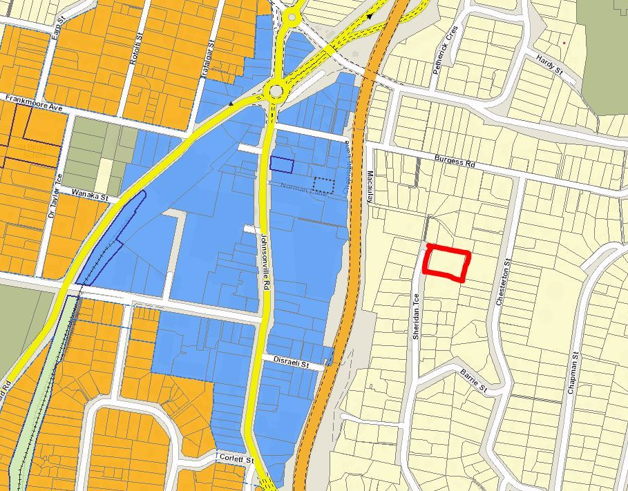 A copy of a section of the District Plan showing the position of 1 Sheridan